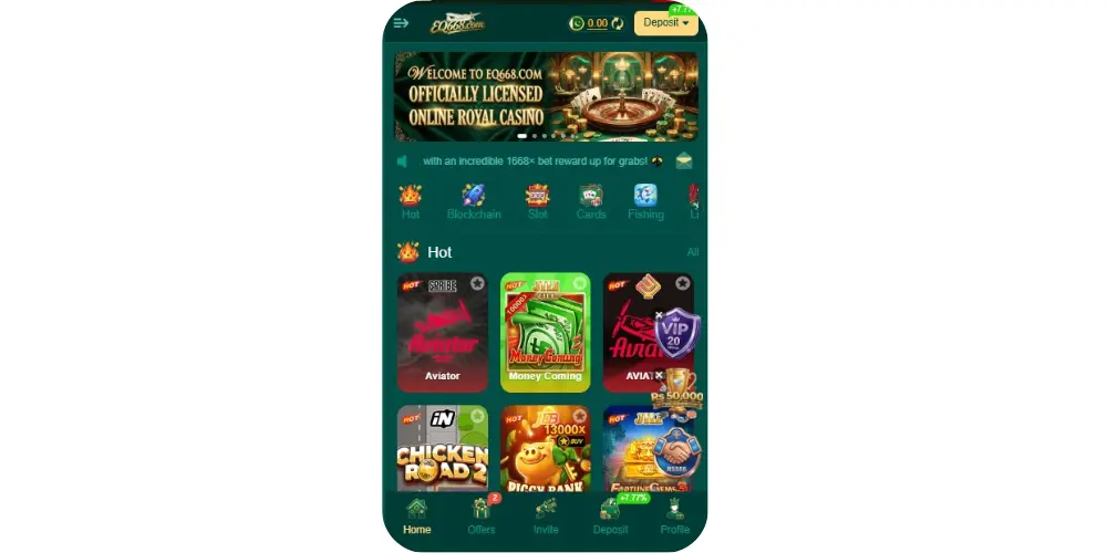 EQ668 Game is a mobile-based online gaming platform that allows users to play different types of games and potentially earn rewards or real money. It is mainl y designed for smartphone users and is usually available as an APK file rather than through official app stores.