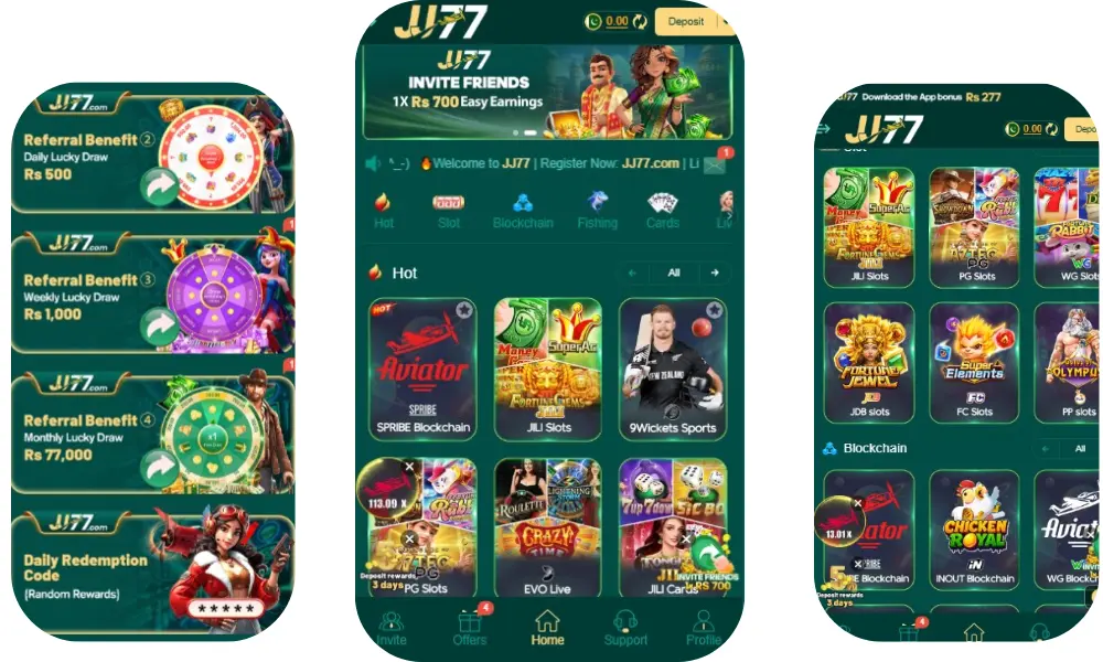 In the market these days, there are many games, but not all are real. JJ77 Game is a real earning game with super graphics. Choose your favorite game and start to earn real money. For user engagement, this application has all types of casino games. You will find all slots for live sports betting games. Daily bonus, free spins, and a gift increase the earning level.